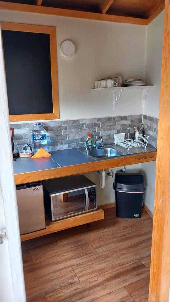 - Microondas, cafetera, jarra eléctrica para calentar agua, platos, tazas, copas y utensilios para 4 personas.
