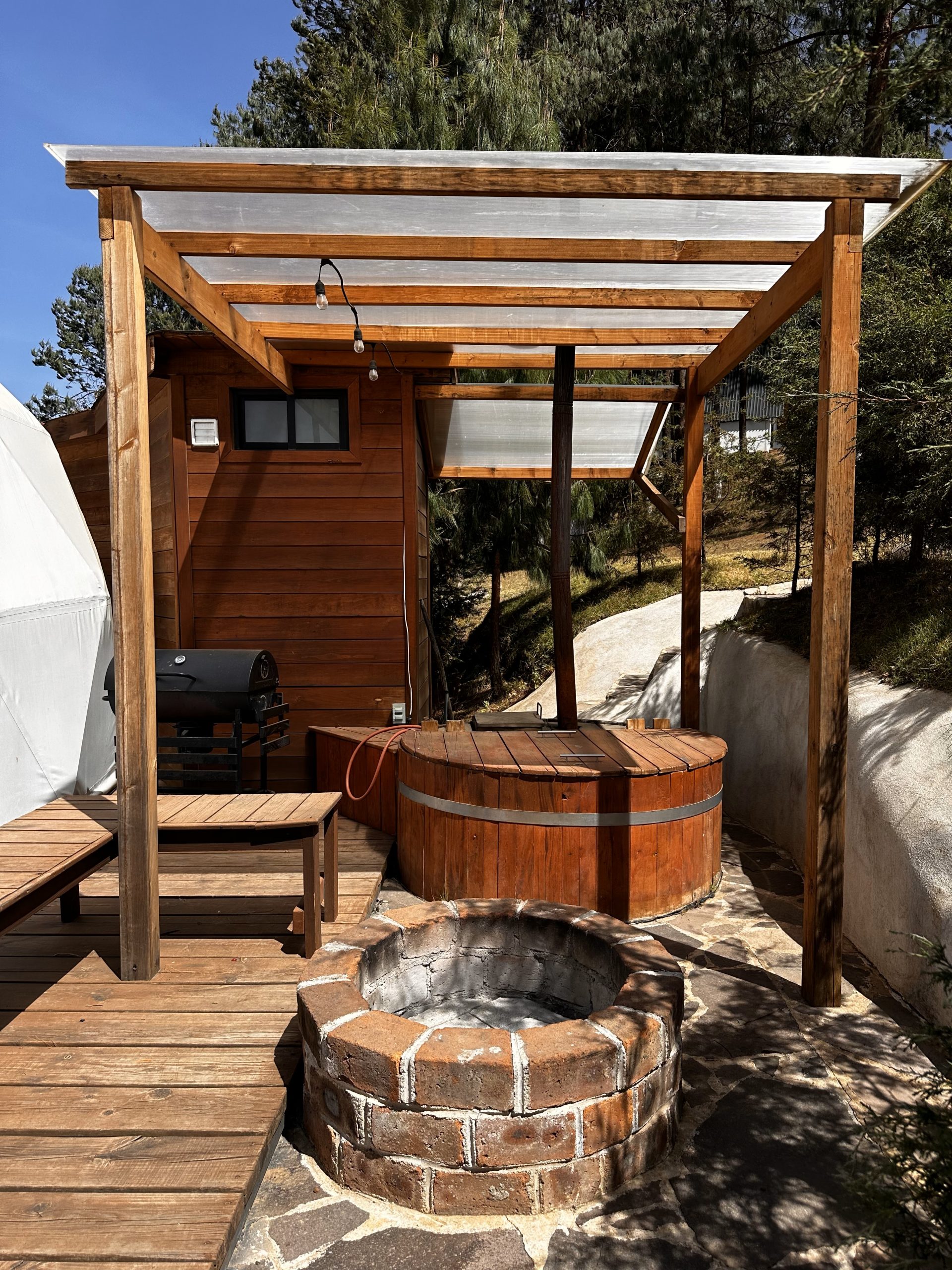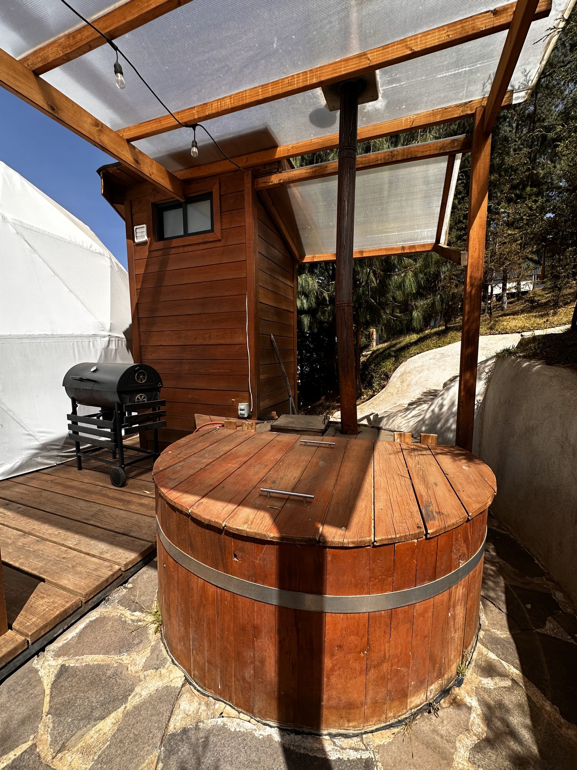 - El uso de la tina artesanal de agua caliente es opcional y se debe ANTICIPAR su uso por lo menos un día antes de su llegada, tiene un costo de $600.